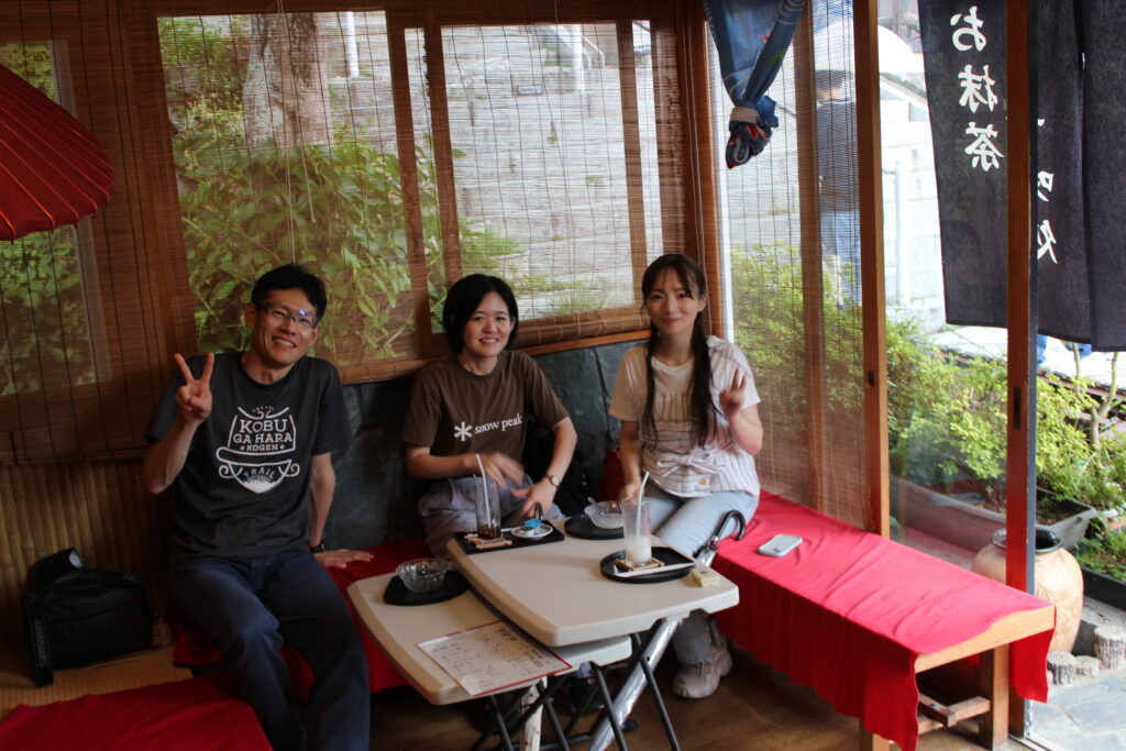 伊香保温泉と言えば、石段街です。全部で365段あるようですが、110段くらい上がったところで休憩。お店に入り、かき氷や飲み物をいただきました。